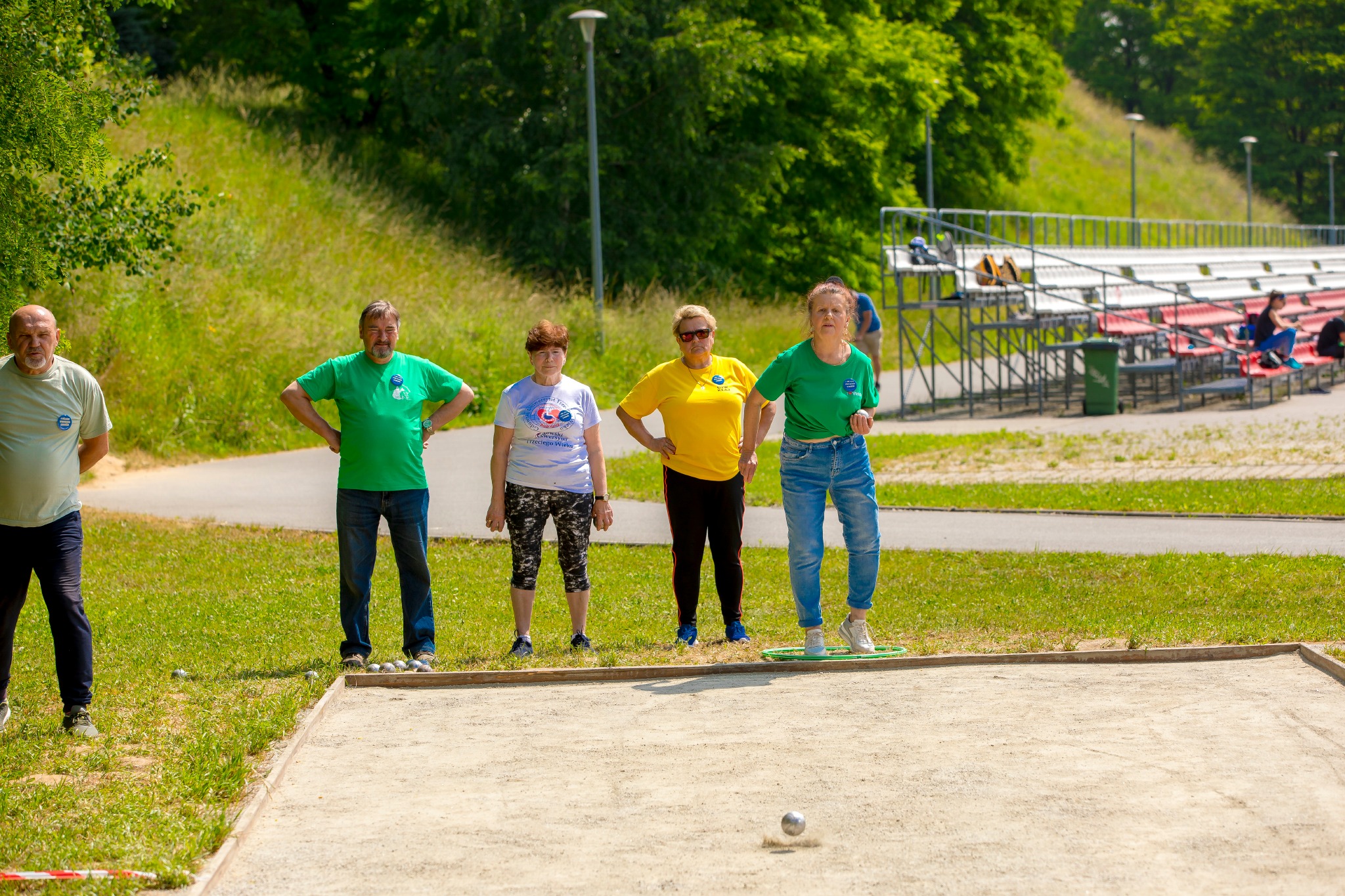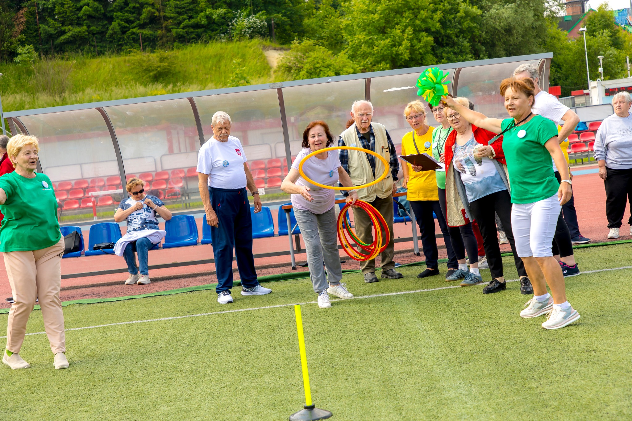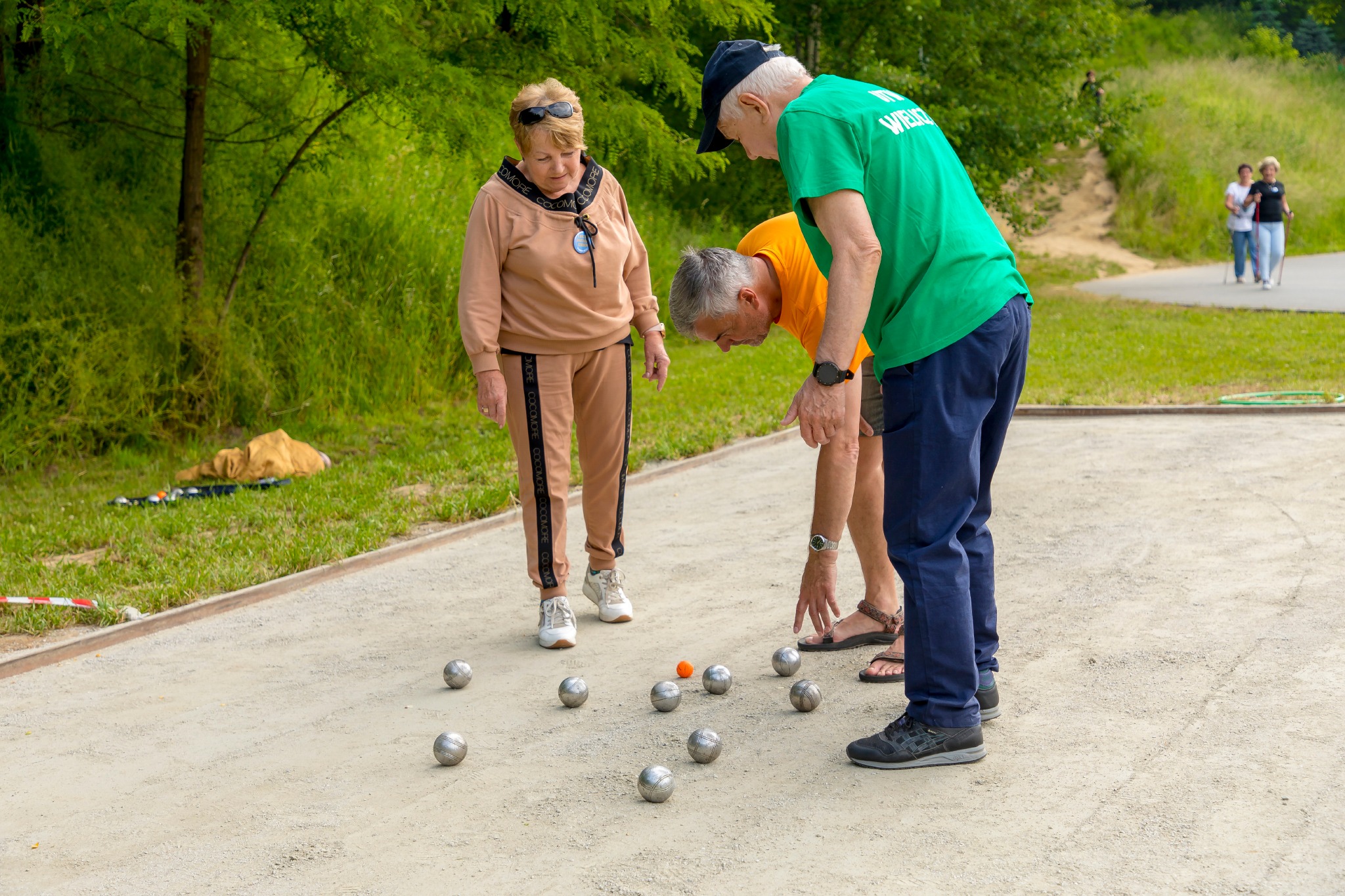 W duchu pozytywnej, sportowej rywalizacji seniorzy mieli okazję sprawdzić się w dziewięciu konkurencjach indywidualnych: nordic walking, boule, rzuty do tarczy, slalom rowerowy, rzuty piłką do kosza z miejsca, rzuty obręczą na pachołek, hulahop, badminton parami, podbijanie piłki nożnej oraz w trzech konkurencjach drużynowych.