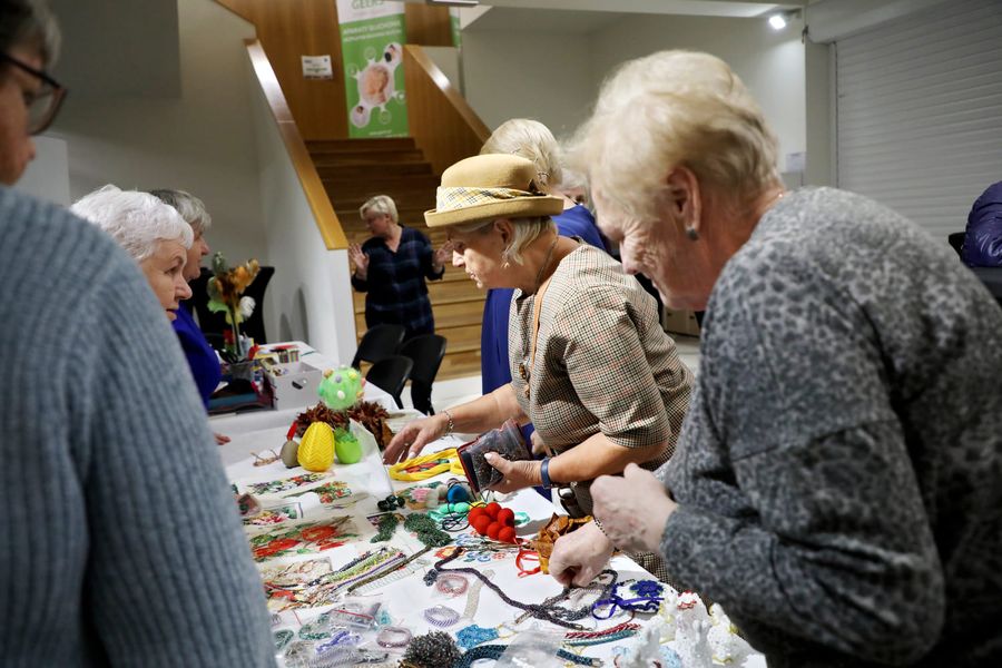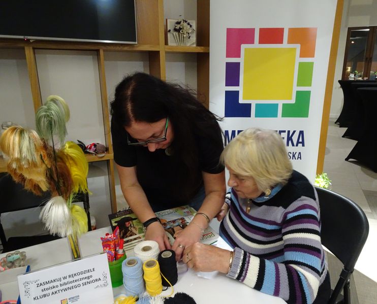 Seniorki działające przy wielickiej bibliotece zaprezentowały na I Wielickich Senioraliach stoisko bibliotecznego Klubu Aktywnego Seniora ZASMAKUJ W RĘKODZIELE. Można było podziwiać i kupić własnoręcznie wykonane rękodzieło czy biżuterię zrobione podczas warsztatów oraz wziąć udział w mini warsztatach tworzenia breloczków, kwiatków z filcu oraz liści z makramy. Dziękujemy za udział w wydarzeniu.